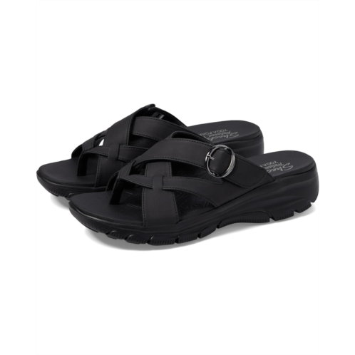 Designed with an EVA midsole that offers long-lasting comfort and absorbs shock, the SKECHERS Easy Going - Sundown sandals are easy to slip on and off. The strappy design with a buckle detail offers a secure fit and durable support. Perfect for your beach trips and vacations, these slide sandals keep your feet cool and comfortable all day.