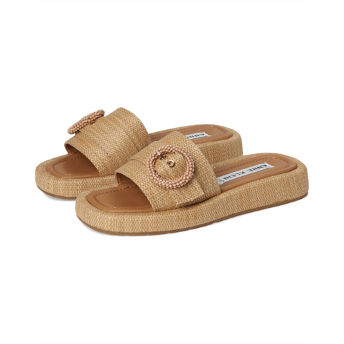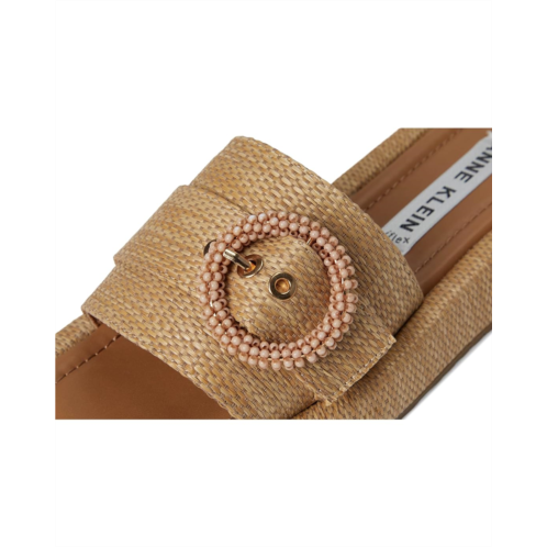 Anne Klein Starla is a sleek silhouette sandal. Crafted from EVA upper, polyurethane lining, and rubber insole, this pair of sandals features open round toe, thoughtful detailing, unique buckle ornament adds a touch of sophistication to any casual ensemble, slip-on style, and brand detailing on the footbed.
