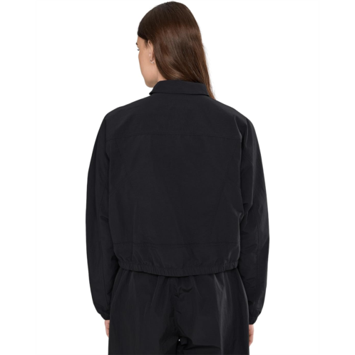- Simplicity and functionality come together in this lightweight jacket. Textured, water-repellent nylon and an elongated collar help keep you covered come rain or shine. Angled seams and a cropped length add dimension to the oversized fit.