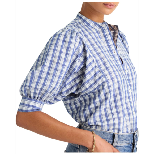 - The Madewell Tessa Top - Light Weight Combed Poplin is a breathable essential that blends tailored polish with everyday ease. It offers a clean silhouette with mock neckline, button-cuffed short puffy sleeves, and allover check print pattern.