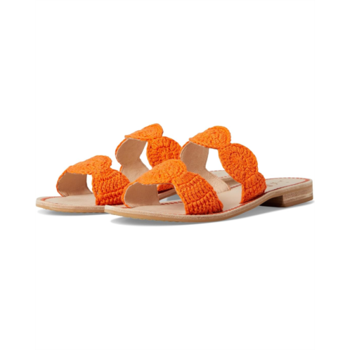 Step out with scalloped finesse wearing the Jack Rogers Laurin Crochet Sandal - Crochet Flat. The slip-on footwear features cotton upper construction and an open round toe silhouette.