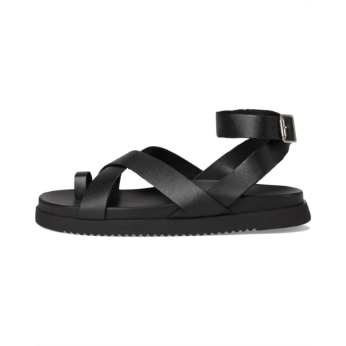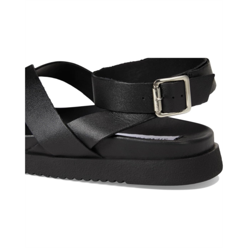 Elevate your style with the Steve Madden MIRA sandal. The sleek ankle strap and buckle closure provide secure and comfortable wear. These timeless sandals are perfect for any occasion, making them a versatile addition to your shoe collection. Featuring round toe, crisscross strap design, and brand detailing on the footbed.