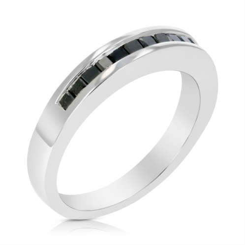 [US] Vir Jewels 1/3 cttw princess cut black diamond wedding band .925 sterling silver channel