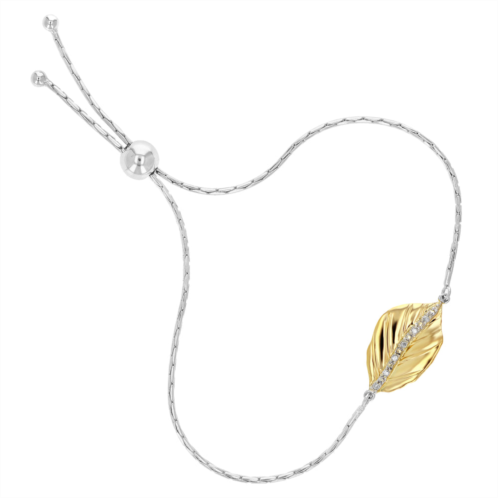 [US] Vir Jewels 1/20 cttw diamond bolo bracelet yellow gold plated over sterling silver leaf