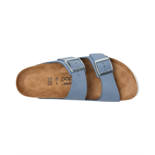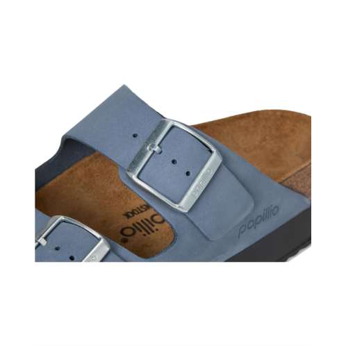 - Elevate your fashion altitude with Birkenstock Papillio's Arizona Platform Sandal in Nubuck. Unveiling a daring platform sole, this iconic design soars to new heights while embracing its classic roots in luxurious nubuck leather. The contoured cork-latex footbed ensures personalized support, complemented by two adjustable straps featuring metal pin buckles for a perfect fit.