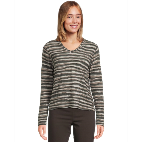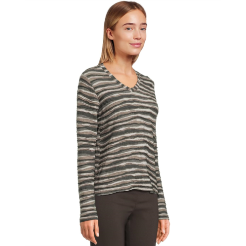 [US] Womens Elliott Lauren Long Sleeve Stripe V-neck Knit Top