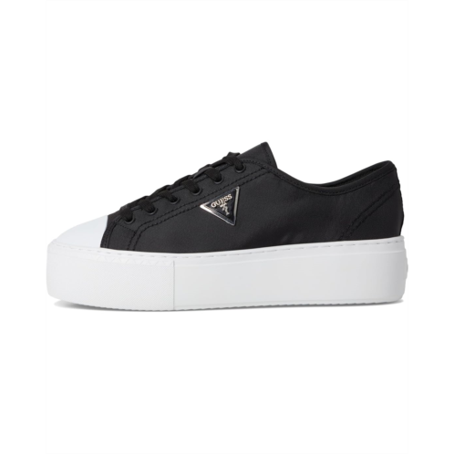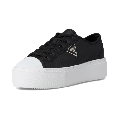 The GUESS Joezi shoes give a casual dress-up-or-down appeal. These platform sneakers are accented with a signature Guess triangle logo that is ready to wear with jeans or a dress. They are designed with a cushioned insole, synthetic sock lining, and synthetic rubber lining. The rubber upper features a lace-up closure for a secure fit. These lace-up sneakers are perfect to pair with different outfits and styles.