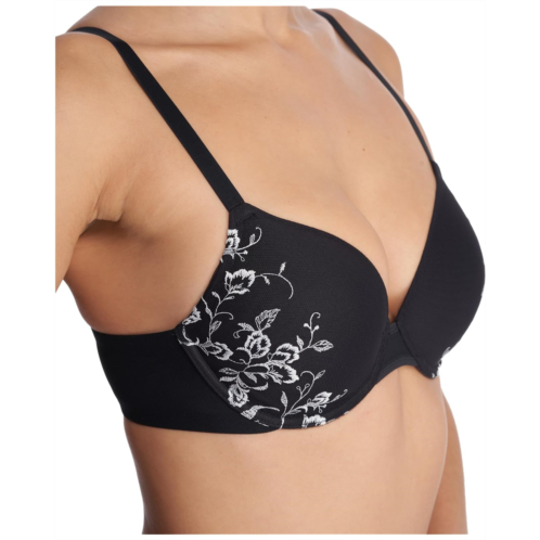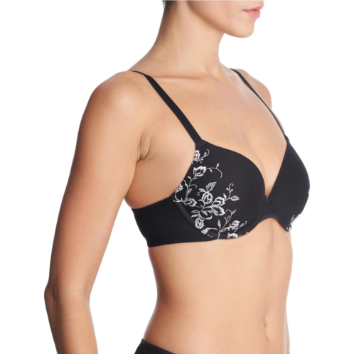Featuring rich and innovative embroidery that adds a seductive touch and asian-inspired stretch embroidery knitted onto stretch mesh with no darts or seams, the Natori Flawless Contour Underwire creates a seamless appearance beneath clothing. The stretch foam pads with a sleek liner for all day comfort, fully adjustable Natori logo straps add to the convenience, and 2-ply barely-there mesh backs elevate comfort.