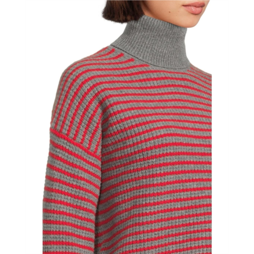A cold-weather essential, this striped waffle-stitch turtleneck sweater is crafted of 100 percent wool. Its relaxed fit and drop shoulders make it both cozy and stylish.