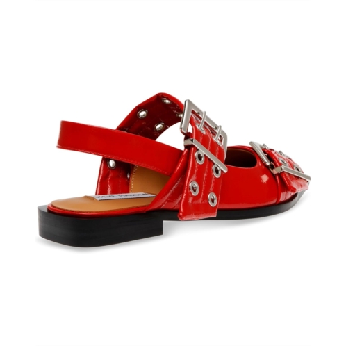 All eyes will be on you no matter where you go wearing the Steve Madden Graya Slingback Flats. Framed in a sleek pointed toe silhouette with a snipped sole and a low block heel, these shoes impress with wide grommet upper straps with oversized buckle closures. The shoes are lightweight and possess a padded leather insole for all-day wear.