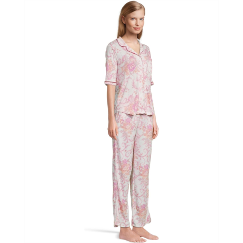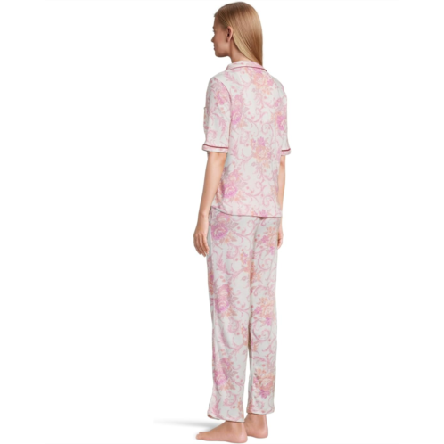[US] Womens Karen Neuburger Petite Romantic Fields Elbow Sleeve Pajama Set with Lace