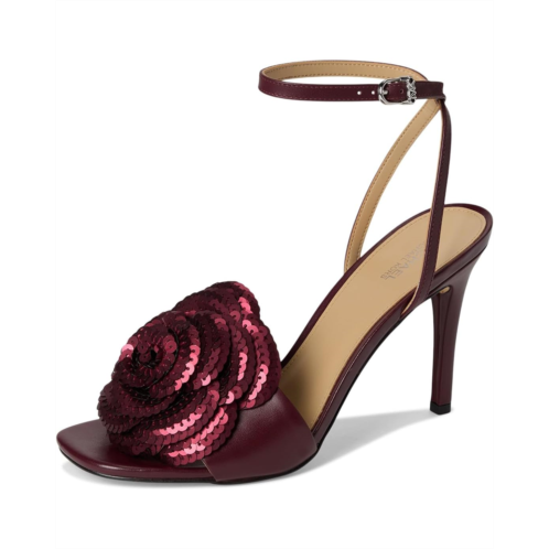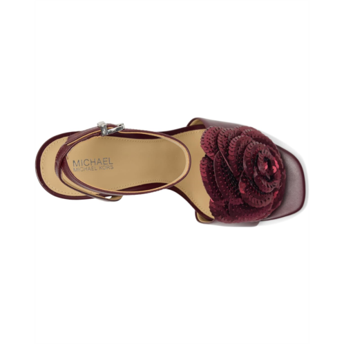 - The MICHAEL Michael Kors Elodie Sandals highlight craftsmanship and artistry in the most elegant and feminine way. These heeled sandals boast a handmade 3-dimensional flower, crafted through a meticulous process, from precision cutting the petals to individually heat molding for the perfect petal shape. Assembled with care, the petals converge to create a stunning flower ornament perfectly secured atop these simple yet refined sandals. The leather upper, leather insole, and faux leather lining make them comfortable and durable. Become the talk of the party wearing these leather heels.