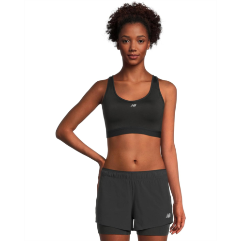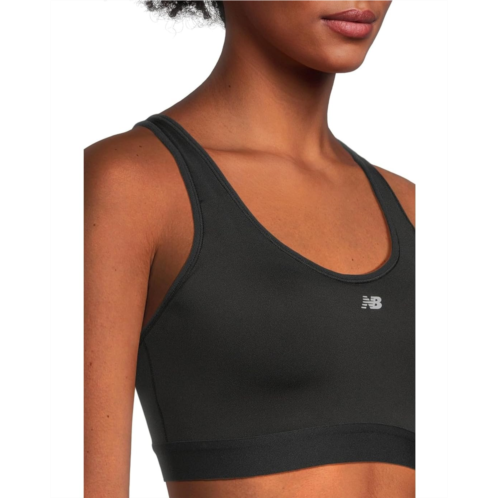 - Designed for full support and ultimate comfort, so you stay focused on your next run. The New Balance NB Essential Run Bra features NB DRY fast-drying technology that wicks moisture away from your body to help you work out with ease. Its high-impact support helps give you a locked-in fit and feel during max-intensity workouts like running and cross training, while the built-in padding provides full support. This sports bra is made from butter-soft, poly knit fabric with stretch that is designed to move with you for ultimate comfort. It is designed with adjustable straps for a comfortable fit and a fitted silhouette that is form-fitting, designed to feel snug against the body. The adjustable bottom band with a hook-and-eye closure at the back ensures a customized fit. This wire-free racerback bra offers full support and is specifically engineered to meet the demands of high-bounce activities such as runs and sprints of all distances.