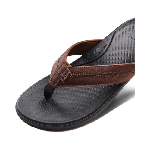 - Unwind and chill out in style wearing the Reef Cushion Phantom 2.0 Le. Crafted from leather upper with rich, and full grain strap, this pair of classic silhouette slippers features round toe design, cushioned and rebounding support footbed, polyester lining, and brand detailing on the footbed.