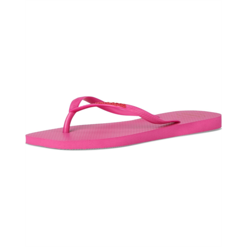 - The Havaianas Slim Square Logo Pop Up Sandals are designed in a thong style with an easy slip-on design. This open squared-toe sandal features a rubber upper with the iconic Havaianas logo in a contrasting color and prominently displayed on the strap. It also comes with a rubber lining and insole.