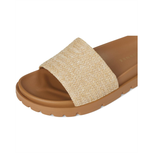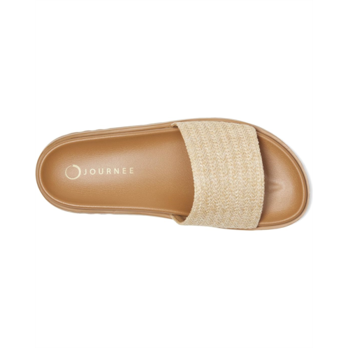 - The Journee Collection Starr slip-on sandal features a minimalist design with a single band across the foot, offering both style and comfort. Its cushioned insole provides all-day support, making it perfect for long wear. The textile uppers and treaded outsole ensure durability and traction, while the open-toe design adds a relaxed, airy feel.