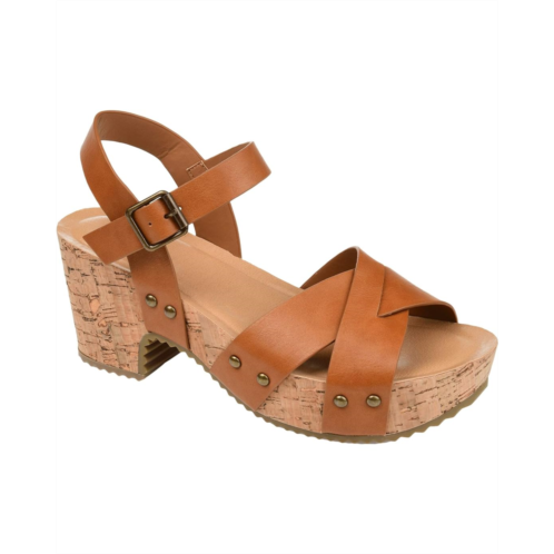 - The statement making Journee Collection Comfort Foam Valentina Sandals feature a faux leather upper with a cork-inspired sole for a unique and stunning look.