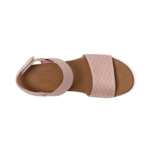 - Celebrated lifestyle expert, Martha Stewart, delivers her one-of-a-kind touch to Skechers in this classically chic collaboration. Elevate your style and summery comfort in the BOBS from SKECHERS Martha Stewart Arch Fit Beach Kiss-Beyond Chic sandals. These casual sandals have a microfiber upper with metallic underlays and Arch Fit comfort foam footbed. They are made of a foam insole that provides cushioned comfort. Made with 100% vegan materials, these sandals are designed with an elasticized ankle strap and a slingback strap with a hook-and-loop closure for a comfortable fit.
