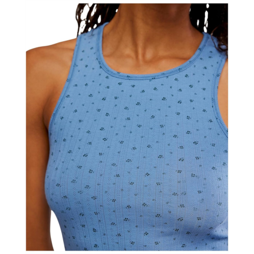 - Rejoice in the soft ribbed fabrication and form fitting silhouette of the Free People Fresh In Love Printed Tank Top. The pull-on style top features a crew neck, a sleeveless design, and an allover subtle print. Soft pointelle gives a femme touch to this printed tank, while the lettuce edge trim completes the look.