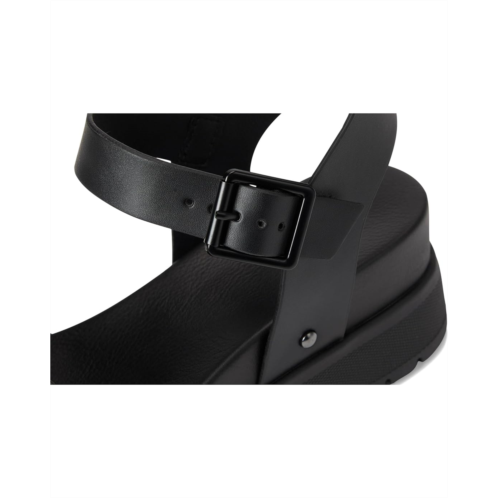 - Ankle strap buckled closure.