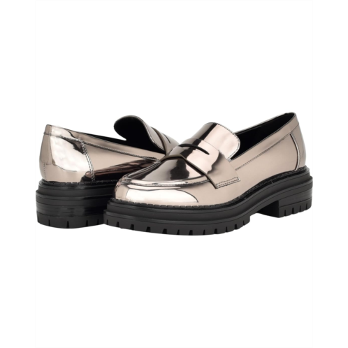 Be it your busy week day or a casual weekend, the Calvin Klein Grant Flats are always there to enhance your style as well as comfort. With the slip-on style, the shoes can be easily worn while you are on the go. Grounded on a lug sole, the shoes highlight a classic penny keeper style with an almond toe and a low block heel.