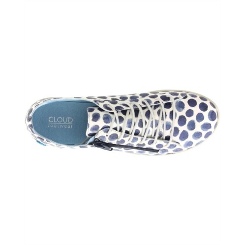 The CLOUD Aika Tupai features an Italian leather upper with polka dot print, contrast top stitching throughout, lace-up and side zip closure, round-toe silhouette, and flexible rubber outsole.