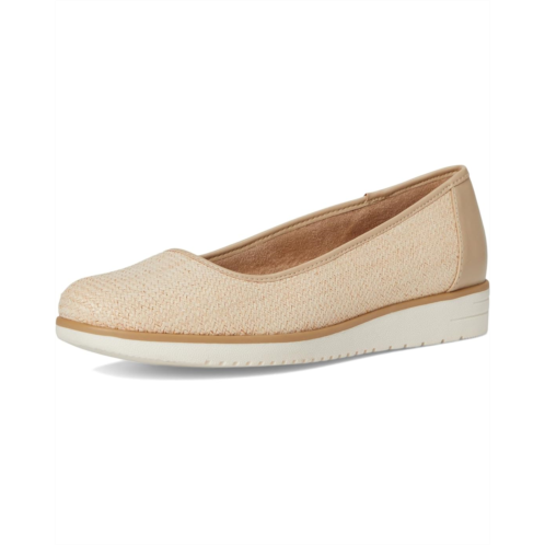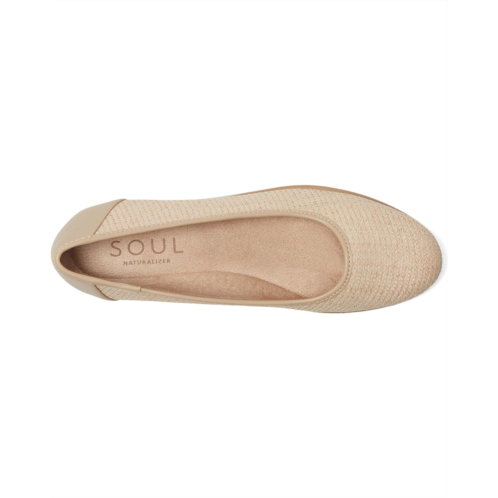 Everyday elegance: The Naturalizer Soul Naturalizer Idea Ballet2 is the perfect blend of comfort and chic. These slip-on ballet flats are perfect for any occasion, featuring a sleek synthetic resin upper and a lightweight, flexible synthetic rubber outsole. Designed for all-day comfort, they're crafted with ContourFIT technology, offering a sculpted insole, soft foam lining, and memory foam arch support. The sock lining ensures freshness, while the elasticized goring and pull-on design make them easy to wear. Recycled fabric and synthetic linings add a sustainable touch, and the round toe offers a perfect fit.