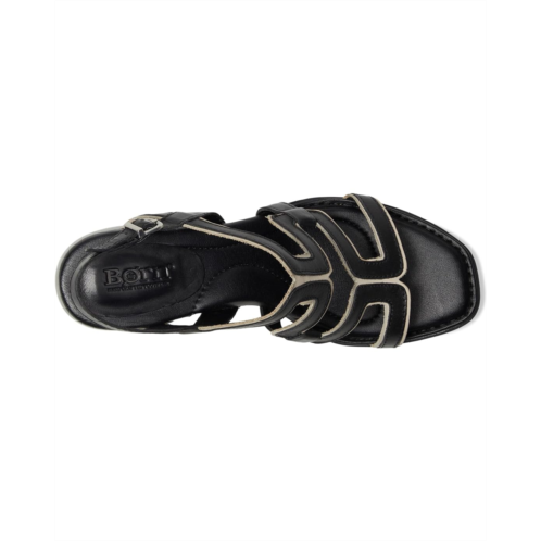 - The Born Sofia features a caged design, mixing both full-grain and metallic leathers, for a sandal that makes a seamless transition from day to night. This Born sandal features an adjustable slingback strap with hidden elasticized gore to allow easy on and off without undoing the strap. The polished wrapped leawood heel is an easy height to wear all day long. The sandals feature soft hand-finished full-grain combination leather or metallic combination leather upper, breathable soft microfiber lining, and cushioned microfiber-covered footbed with extra foam for added comfort.