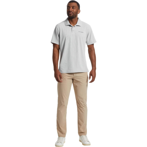 - Look sharp and feel relaxed wearing the Columbia Freezer Polo. This tee features polo neckline, three button placket, short sleeves, slim fit, brand logo on the left chest, and straight hem with side vents. UV-blocking, moisture-wicking, and fast-drying polo made to protect you on hot, sunny days.