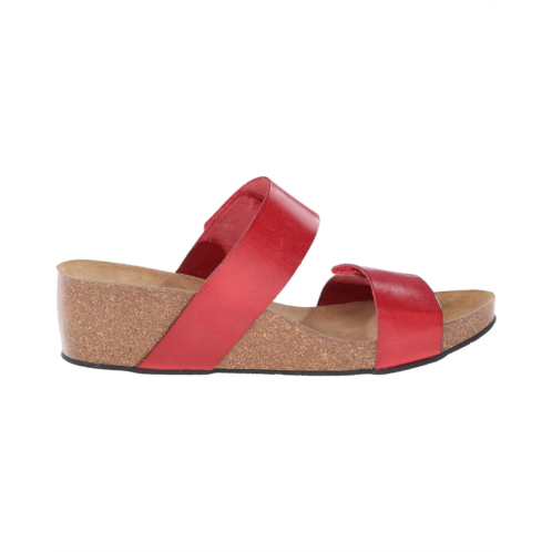 - Lightweight cork platform sits atop a durable rubber outsole.