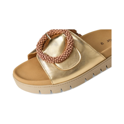 The Gabor Gabor 63.745 features a subtle heel, offering a sophisticated and comfortable boost in height. A rip tape fastening disguised as a buckle trim rests atop the sandal, providing a secure fit to wear through the day!