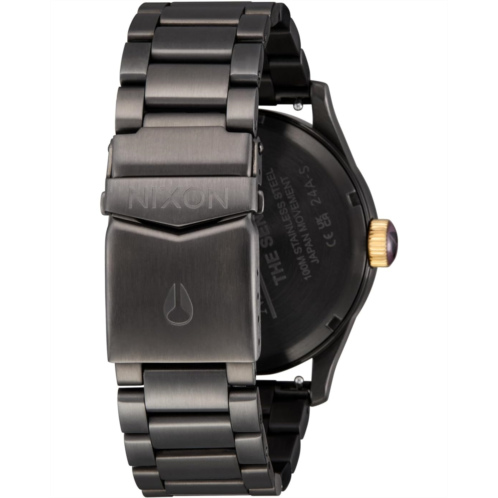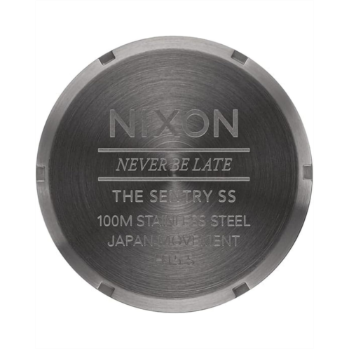 - Keep this timepiece Nixon Sentry Stainless Steel watch for perfect balance of style and function. It has Miyota Japanese quartz 3 hand display with day and date, applied indices, printed seconds track, and custom molded hands. The watch is made of 10ATM custom solid stainless steel case, hardened mineral glass dial, triple gasket crown with enamel fill, stainless steel screw down caseback, and spring pin lugs.