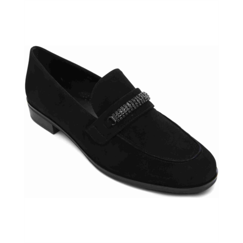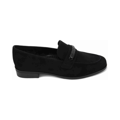 Make every day shine with sophisticated finesse wearing the Vaneli Kiara Flats. The pull-on footwear features suede upper with rhinestone detail on the vamp and stacked heels.