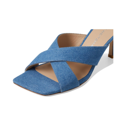 Encourage confidence and grace with every step wearing the Stuart Weitzman Dayna Slide 75. Crafted from denim upper, leather lining, and insole, this pair of sandals features open square toe, crisscross strap detailing on the vamp, stiletto heel, and slip-on style.