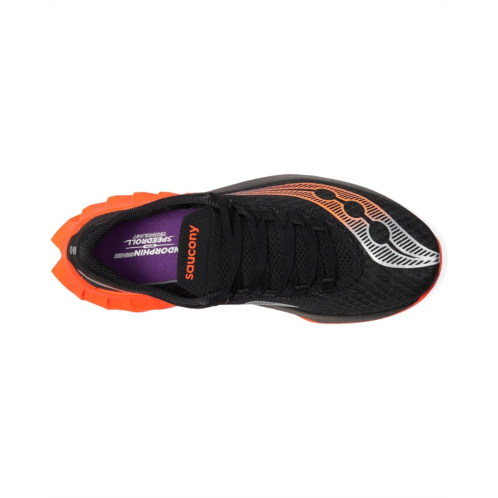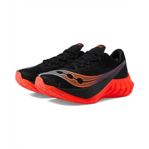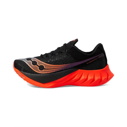 - Reach your destination without feeling tired wearing Saucony Endorphin Pro 4 sneakers. It has textile/synthetic upper, textile lining, and PWRRUN PB removable footbed. A lace-up closure, round bump toe, and padded collar provide right support on stress points. A colorful signature pattern give stunning look to the sneakers.