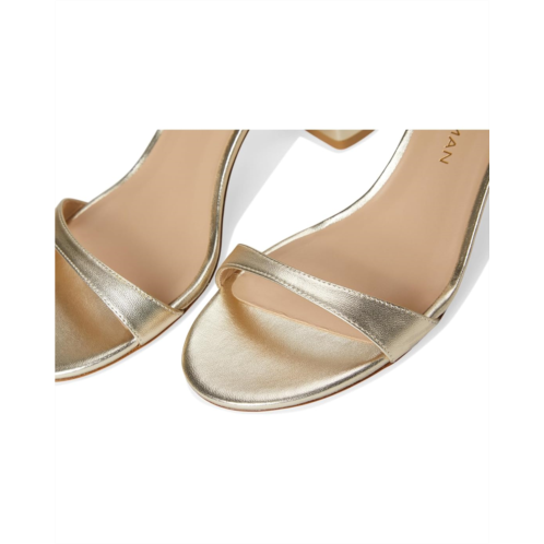- Where style meets grace wear this beautiful footwear Nudist Block 75 by Stuart Weitzman Crafted with a sleek leather upper, lining, and insole, this stunning heel provides a sophisticated finish to any outfit. The stiletto heel adds the perfect amount of lift, while the buckle ankle strap ensures a secure and comfortable fit. With an open toe design, this shoe is your go-to for effortless glamor at every occasion.
