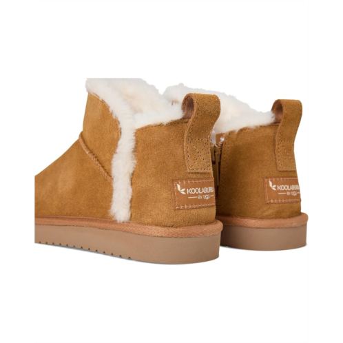 A back-to-school staple that knows no bounds, this Koolaburra by UGG Kids Koola Ultra Mini delivers everything your kiddo loves about our classic boot - just reworked in a shorter silhouette. Offering the same toasty warmth as the original, we have added a curved topline, plush spill seams, and a medial zipper closure for easy on and off. The ankle-high, pull-on style boots feature a suede upper, faux fur lining, and faux fur insole. The ankle pull tab allows easy donning and doffing.