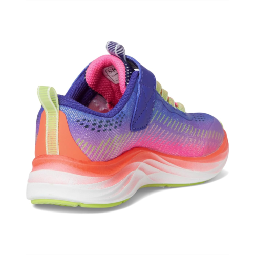 The SKECHERS KIDS Go-Run Accelerate - Glitter Soul 303898L shoes are ombre glitter sneakers that add a colorful twist to your kid's outfits. They are made of a mesh upper that features a hook-and-loop strap and lace-up closure for a comfortable fit. The Skechers Air-Cooled Goga Mat comfort insole and midsole paint offer added comfort. These lace-up sneakers are a must-have for your kid's footwear collection.