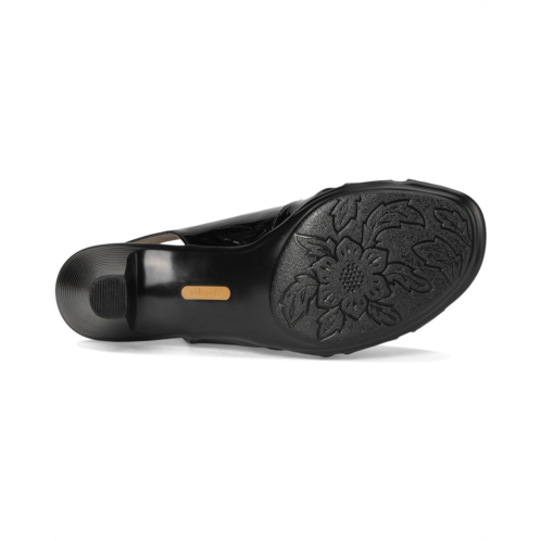 - Upper available in various materials and features a sling-back strap with an adjustable buckle closure.