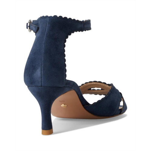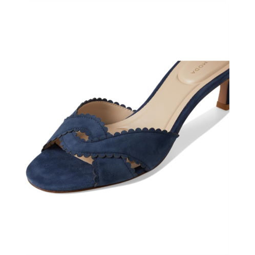 - The Pelle Moda Umelo heels are two-piece pumps with an open, round toe shape, and criss-cross upper straps with soft scallop details. These heeled sandals are designed with a padded footbed and faux leather lining. The suede upper features an ankle strap with an adjustable buckle closure. Walk with style wearing these chic sandals.