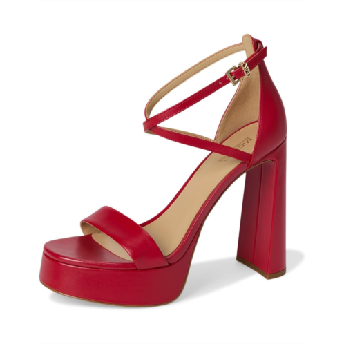 - A modernized high-block heel stands on the square toe platform of MICHAEL Michael Kors Cami Platform Sandals. The low-top footwear features leather upper with backstrap coverage and buckle adjustable ankle strap closure.