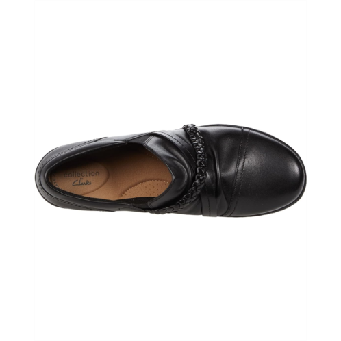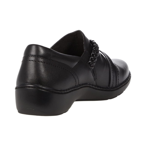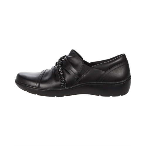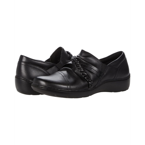 The Clarks Cora Braid Shoe slip-on loafer boasts a smooth leather upper with braided detail and elastic goring at the sides for easy entry.