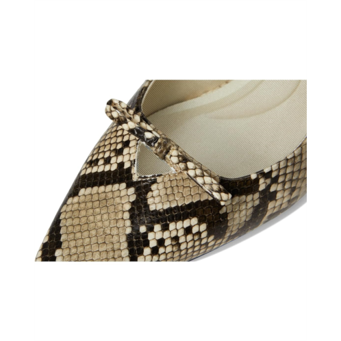 Add a touch of sophistication to any look with the Anne Klein Aniston heels. Classic yet contemporary, these heeled pumps combine timeless elegance with modern comfort. The strappy polyurethane upper not only enhances support but also adds a fashionable touch, making them a versatile choice for any occasion. They are designed with a faux leather insole, synthetic rubber lining, and padded footbed for added comfort and support during all-day wear. Their slip-on design with elasticized side panels ensures a comfortable and secure fit. Featuring a chic slingback strap, sturdy block heels, and a delicate bow for a hint of elegance, these pump shoes effortlessly transition from day to night, pairing beautifully with any outfit.