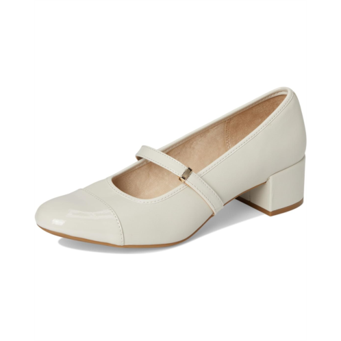 Now trending, always classic-the LifeStride Brooke is the perfect blend of sophistication and comfort. This reimagined Mary Jane heel features a sleek polyester upper with a chic patent toe cap and adjustable strap detail, giving you a polished look for work, weekends, and beyond. Designed for effortless wear, the pull-on fit and cupped heel provide a secure feel, while the Soft System comfort technology delivers shock absorption, superior cushioning, and lasting support. The EVA insole ensures a plush step, and the synthetic rubber outsole with enhanced traction keeps you steady. A block heel adds the perfect touch of elegance, making every stride confident and comfortable. Plus, with partially recycled synthetic rubber linings, it's a choice you can feel good about.