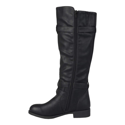 - These stylish moto boots by Journee Collection feature premium faux leather uppers that rise below the knees and highlight subtle top-stitched detail and dainty straps with buckles at the ankles and on the shafts.