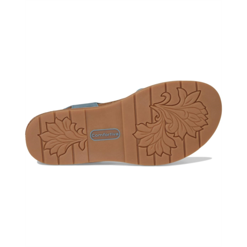 Featuring hook-and-loop adjustability, the Comfortiva Gwen sandals are made of a soft leather upper that makes them a durable footwear choice. The padded cork suede footbed and leather lining provide cushioned comfort. Match your different outfits and styles with these leather sandals.