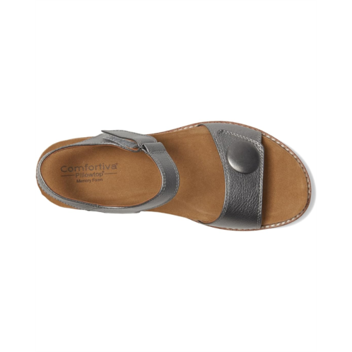 Featuring hook-and-loop adjustability, the Comfortiva Gwen sandals are made of a soft leather upper that makes them a durable footwear choice. The padded cork suede footbed and leather lining provide cushioned comfort. Match your different outfits and styles with these leather sandals.