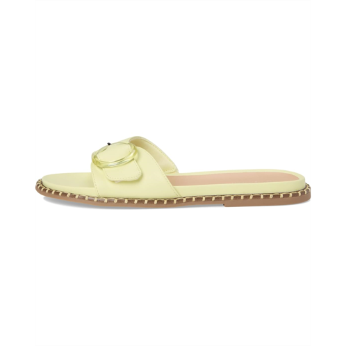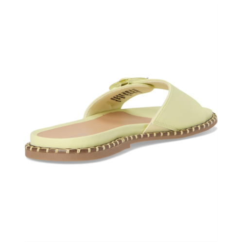 The Kenneth Cole Reaction Syrena is a comfortable flat sandal with buckle detail and added footbed-like cushioning. This slip-on footwear is designed with a faux leather upper strap and a stylish buckle.