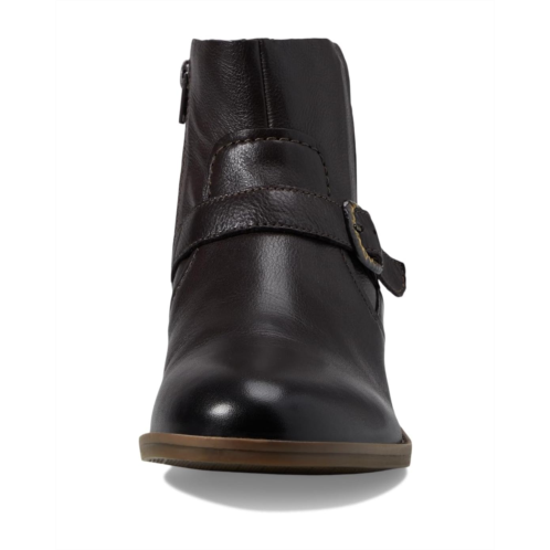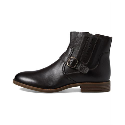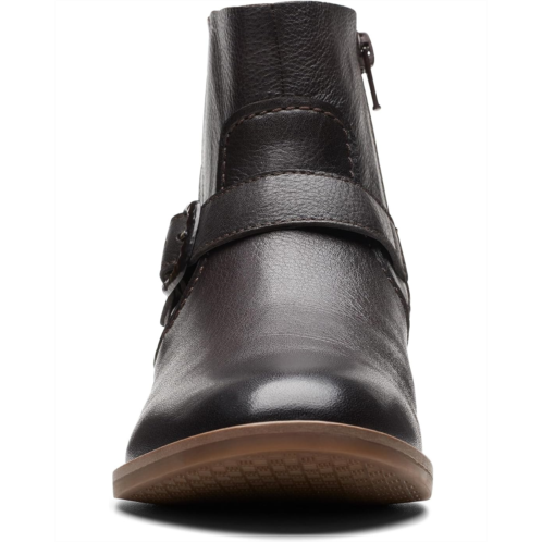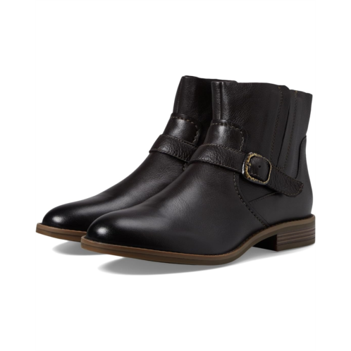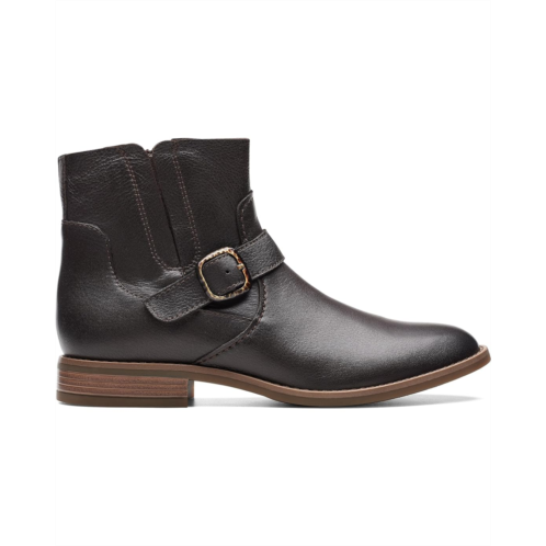- Grab that idealized snugness and smart look wearing the Clarks Camzin Loop boots. This boot has a leather upper, a fabric lining, and a foam insole. This round-toe shoe design comes with a side zippered closure and buckle accent detailing on the front.