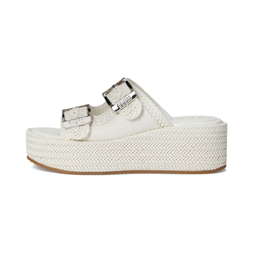 The GUESS Binks is a modern platform slide sandal with sophisticated woven detailing and trendy oversized buckles. Offering slip-on ease, this open toe sandal will take you from day to night!